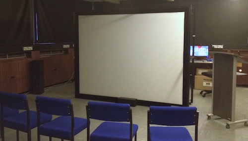 Fourteen years after the VIP Lab I enjoyed the challenge of building another large scale visualization facility and comparing the advances in technology and fall in prices. The Powerwall facility that I built at Bangor used a flat screen (1.83m x 2.44m) with rear projection. The screen had previously been used in the School of Chemistry but they no longer required it and the original projection system that they used needed to be replaced. We wanted to provide support for stereoscopy, but for ease of use, to do this with a single projector rather than a separate projector for each eye.